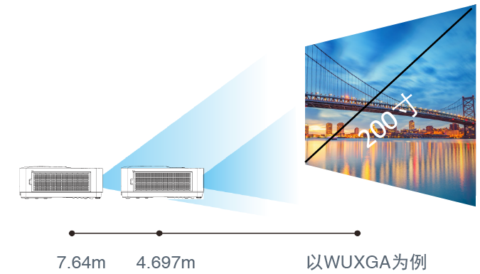 采用偏轴位移,向上位移更多,能更好地适应大尺寸画面安装。