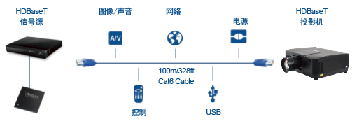 HDBaseT是基于Cate5e/6网线的多信号传输系统,只需一根Cate5e/6网线,可实现最长100米的高清信号实时传输。基于网线的连接也比其他布线方案更加方便,大大简化工程布线,可以适用各种复杂的安装环境,提高系统的稳定性和可靠性技术。
